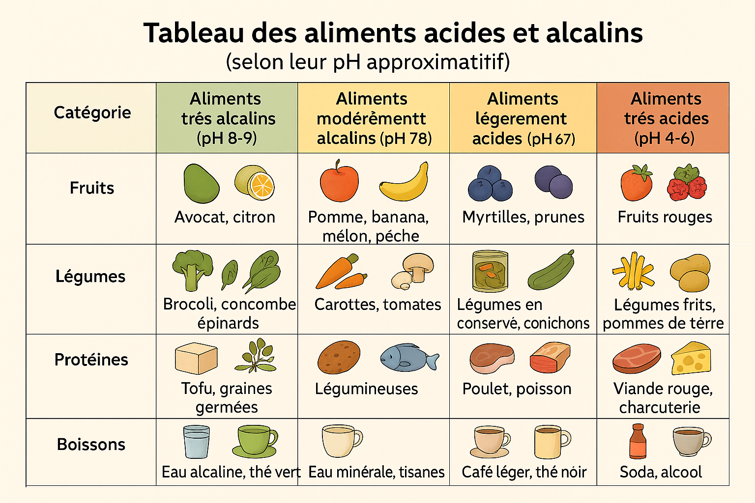 Tableau des aliments acides et alcalins à intégrer quotidiennement